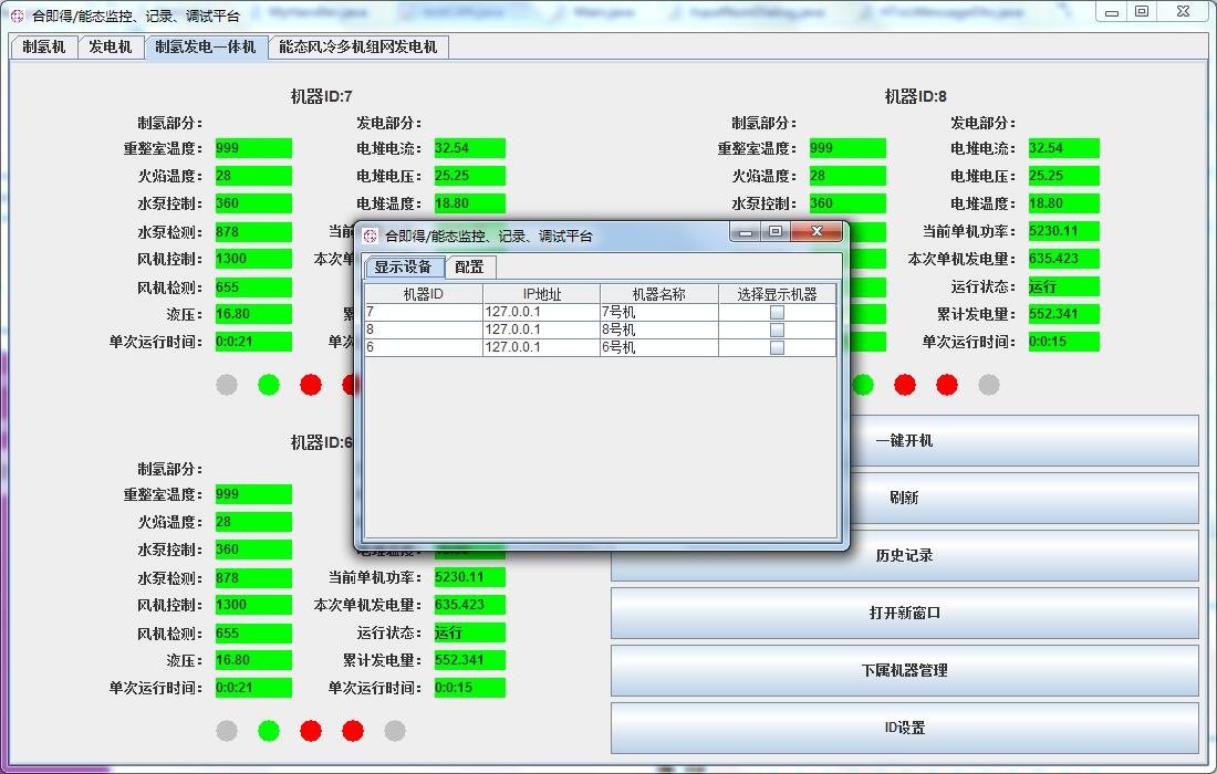 7、多机监控、单机操作、数据的存储和查询、本地组网ID设置。