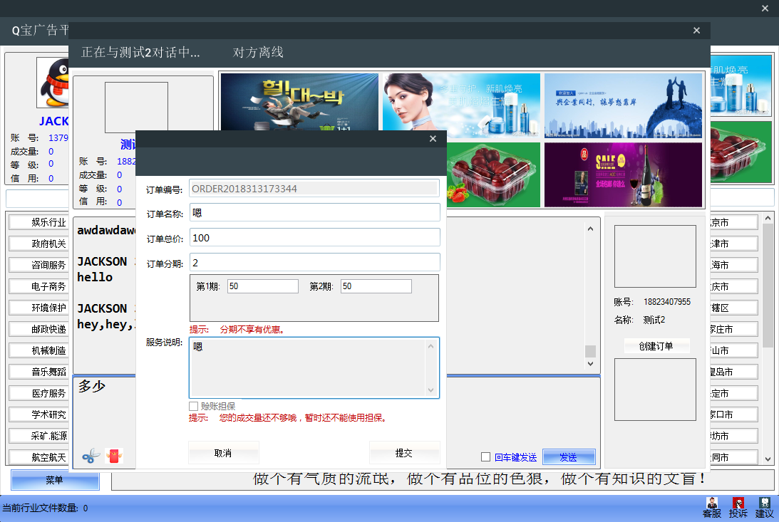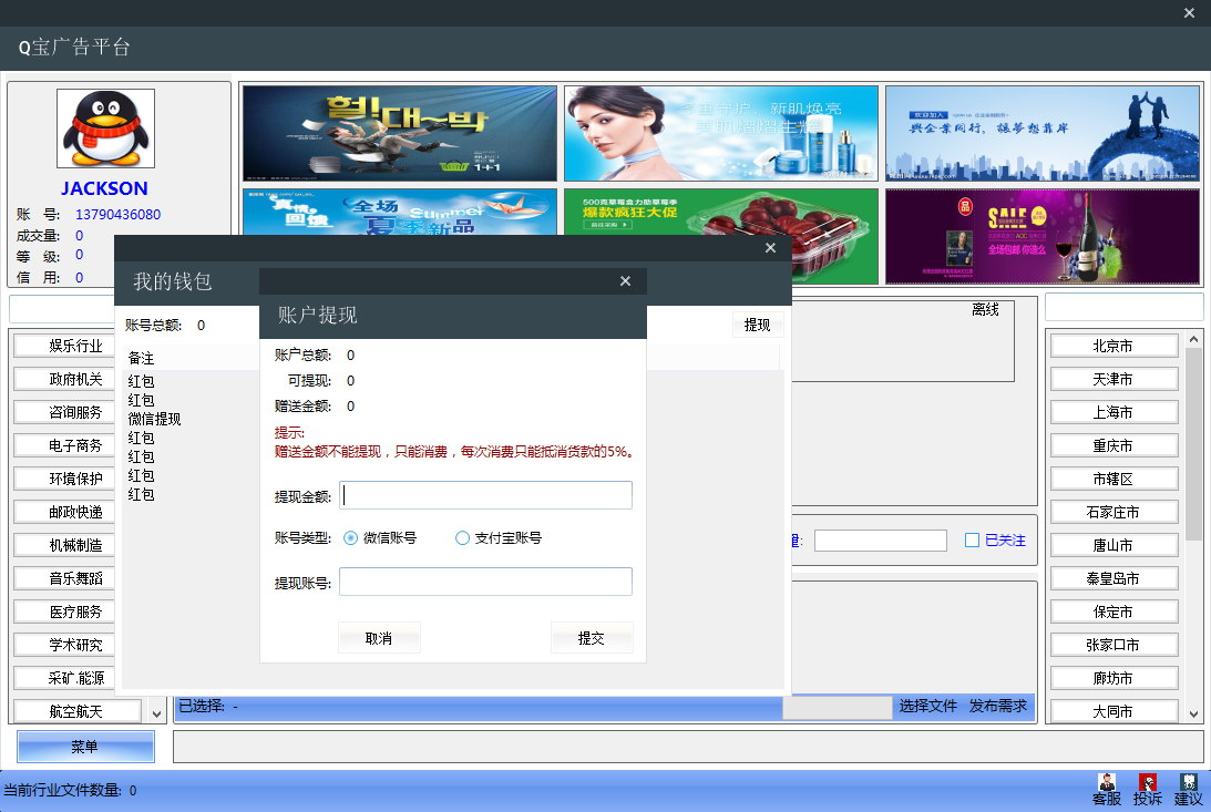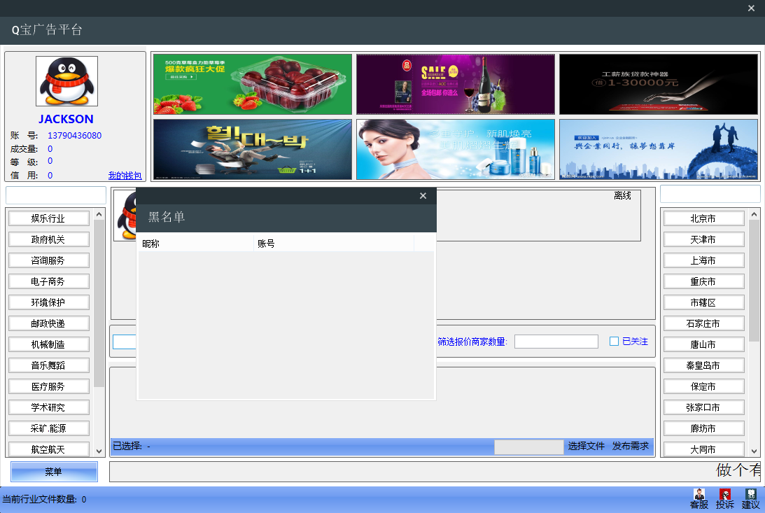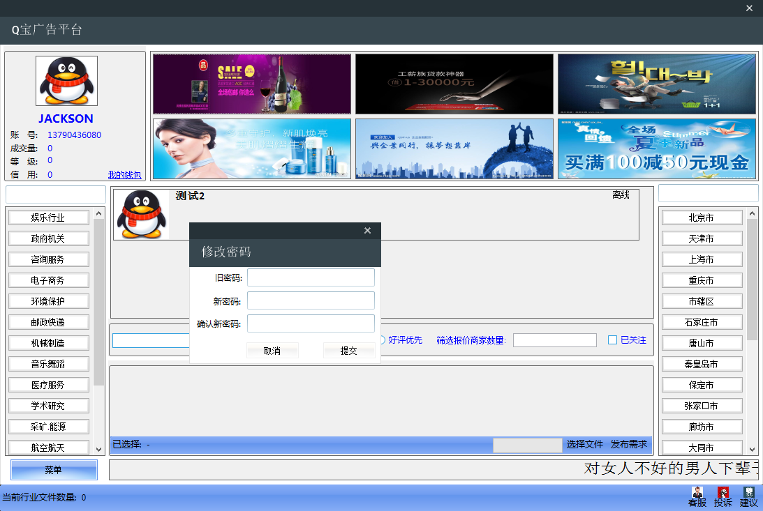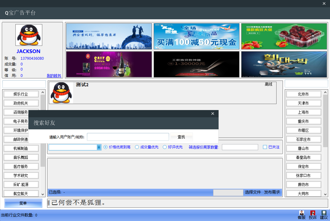 1、Q宝广告平台集在线聊天、在线询价、在线报价、在线交易、评论、红包功能于一体,按区域投放广告。