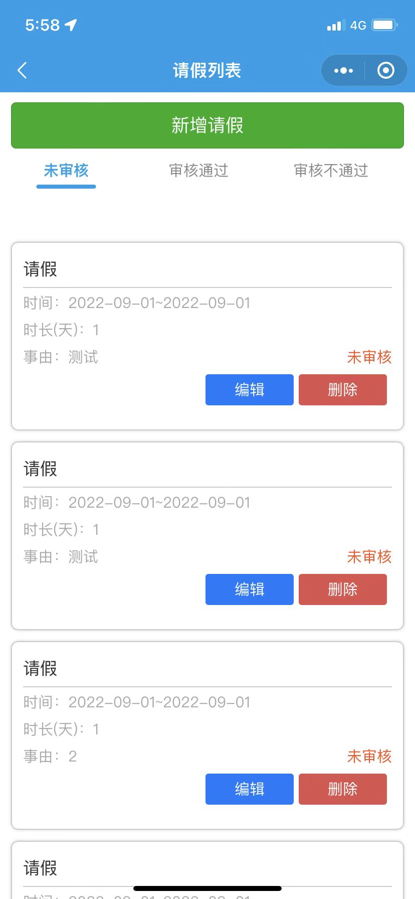 8、请假记录(可查看小程序提交的请假记录)